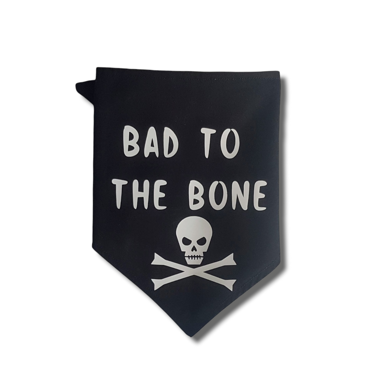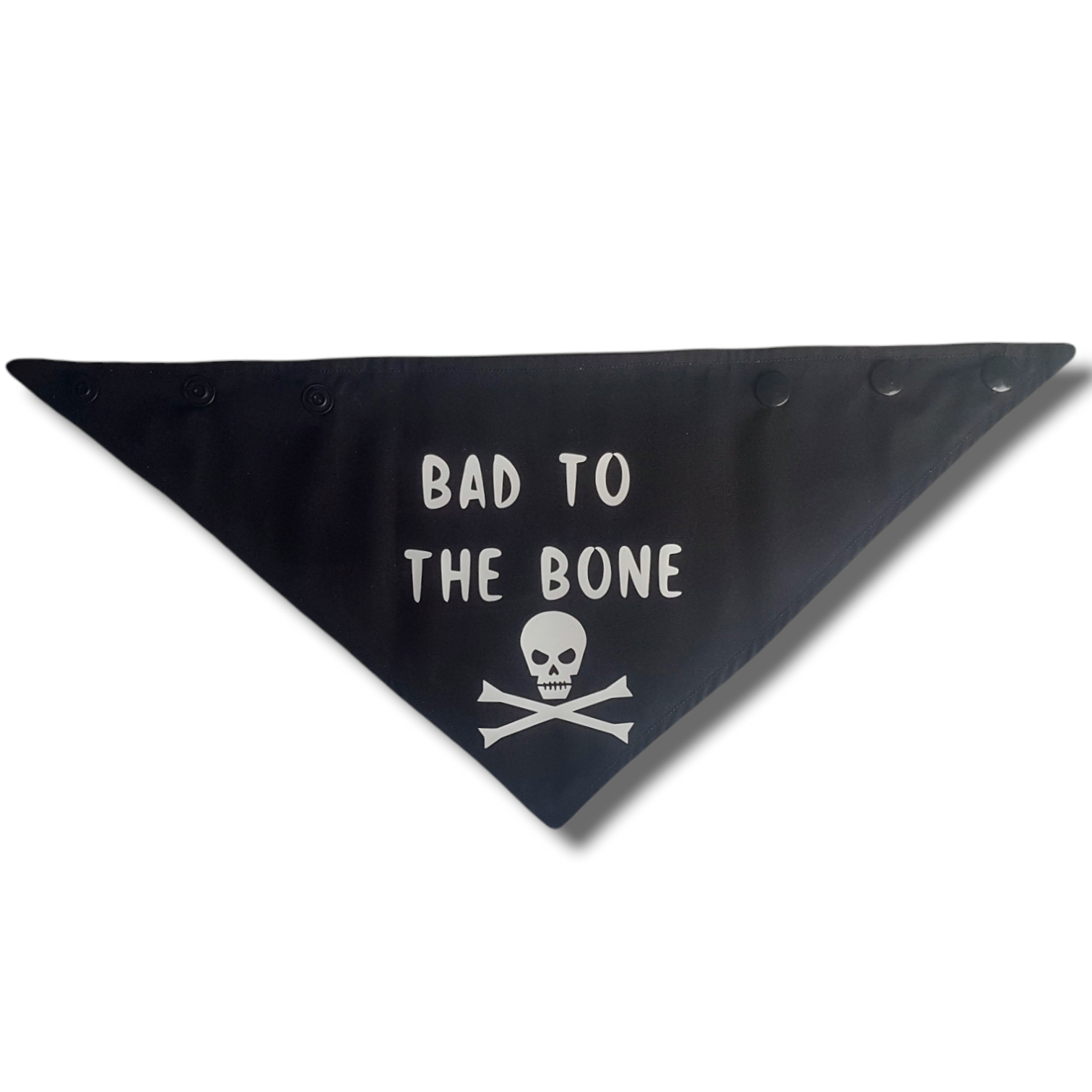 Skeleton print Halloween snap clip bandana - double sided 'BAD TO THE BONE' This 2 in 1 bandana is a perfect buy especially for the Halloween season!