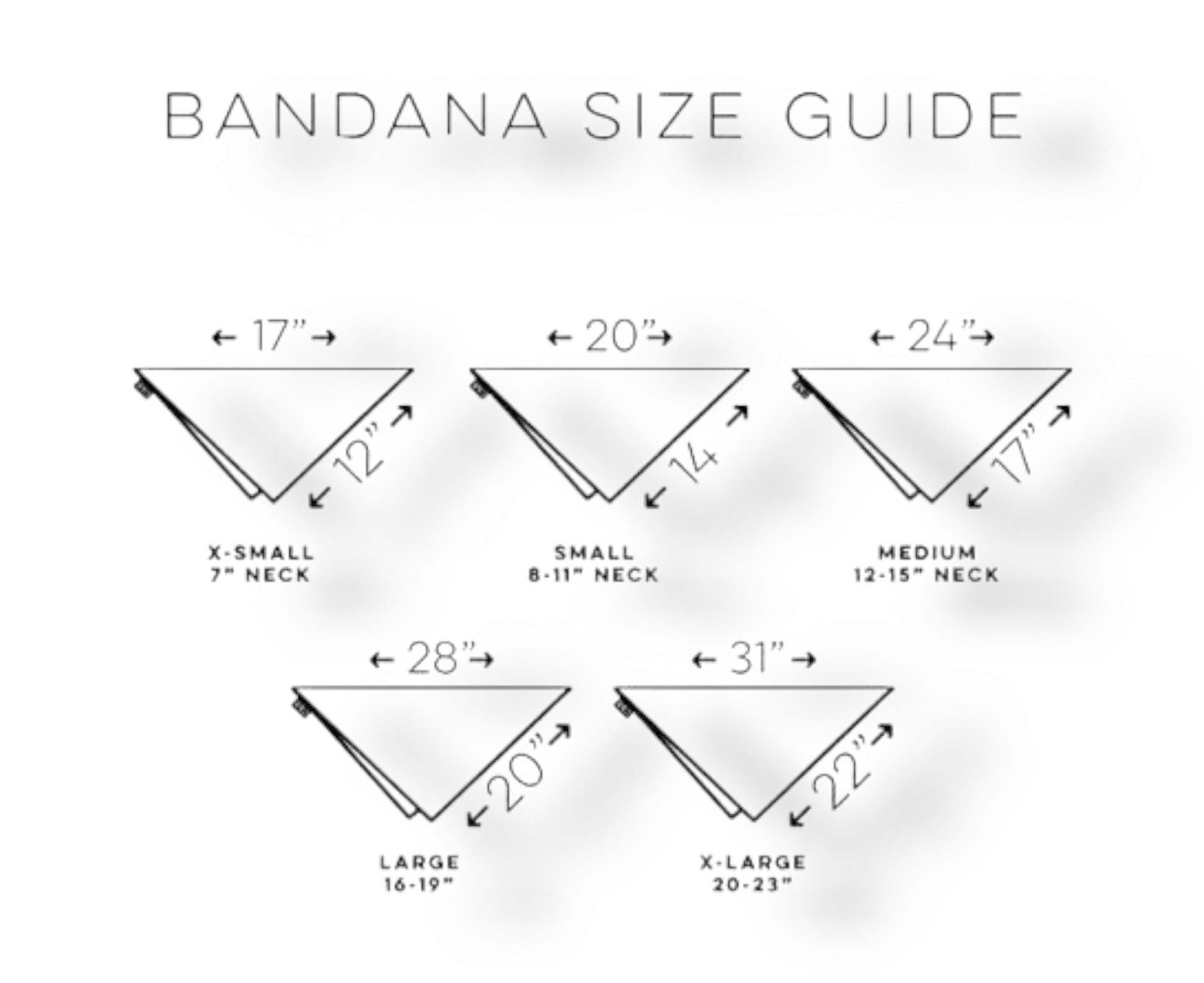 Our tie on bandanas are overlocked around every edge to ensure no fraying, we also have a large range of colours to pick from, please note the thread colour will be black no matter what colour of bandana you pick, this is designed to match alongside the black writing. These can range from x-small to x-large - please see photo for sizing details. And all you have to do once you’ve picked your colour and size is simply tie around your pups neck and strut your support at the dog park!