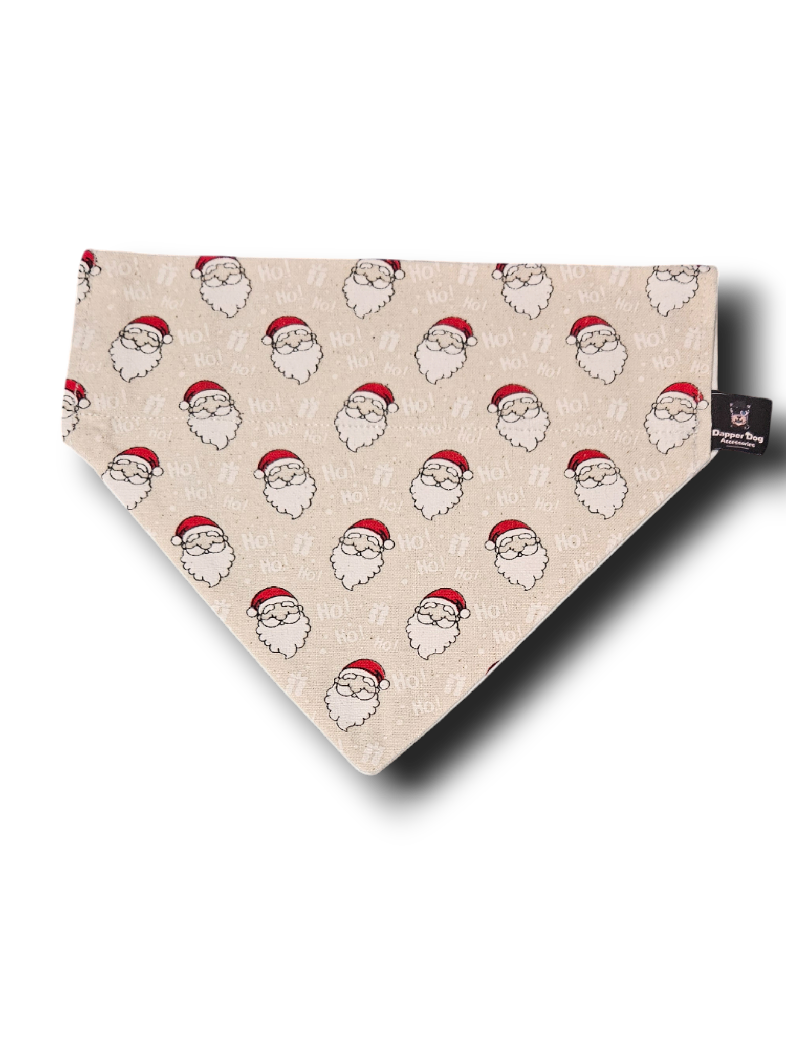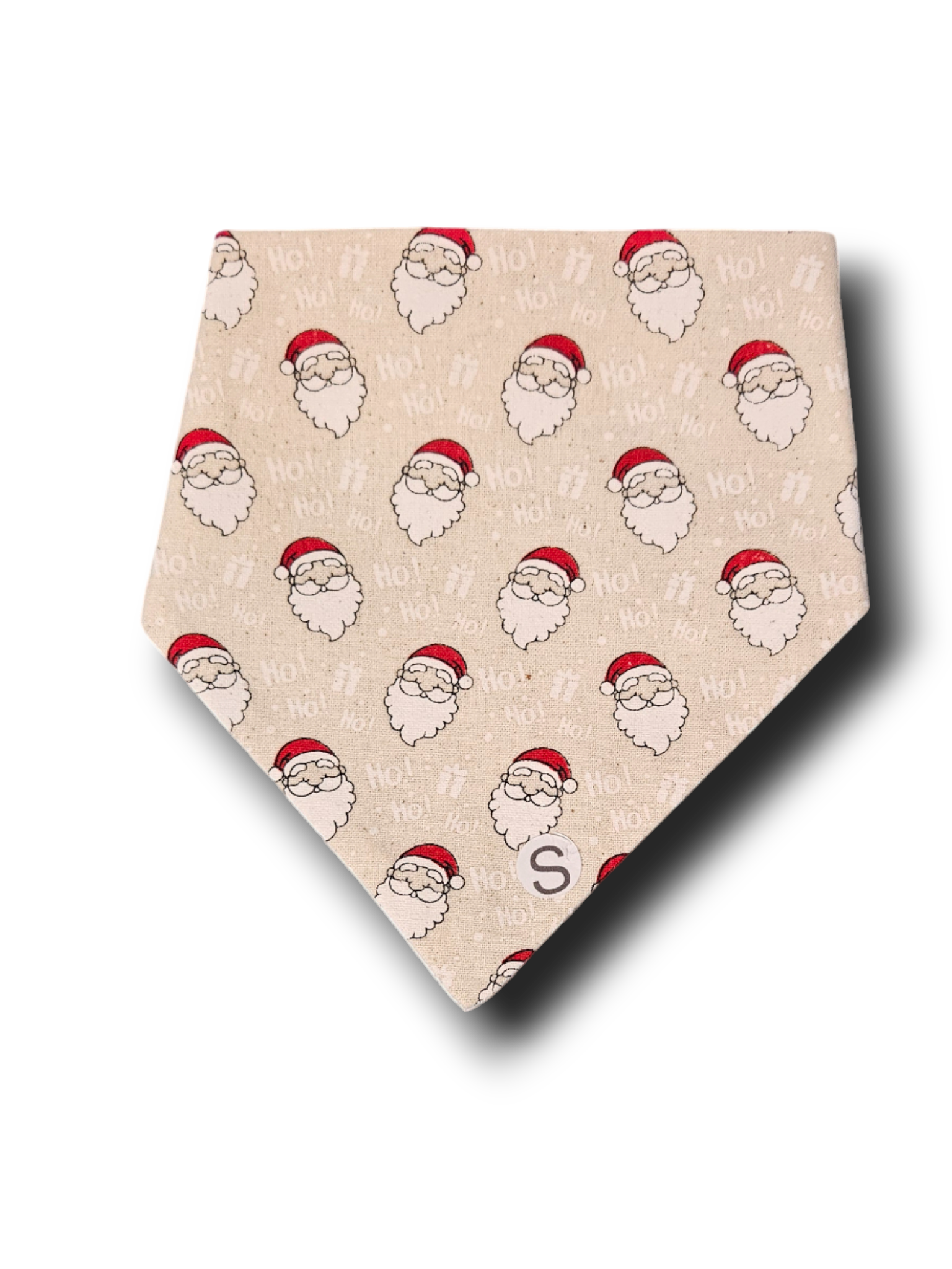 Bring the holiday cheer to your pup with this adorable Christmas Santa ho ho ho bandana. Crafted with red cotton fabric, it features Santa's face and a cheerful "ho ho ho" that will be sure to bring joy to everyone.
