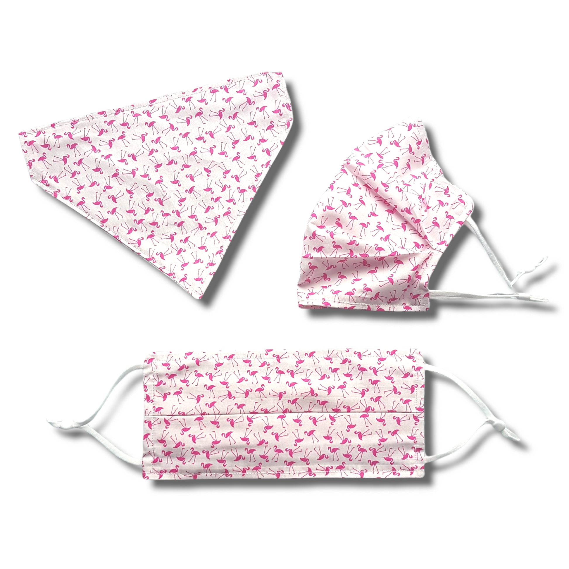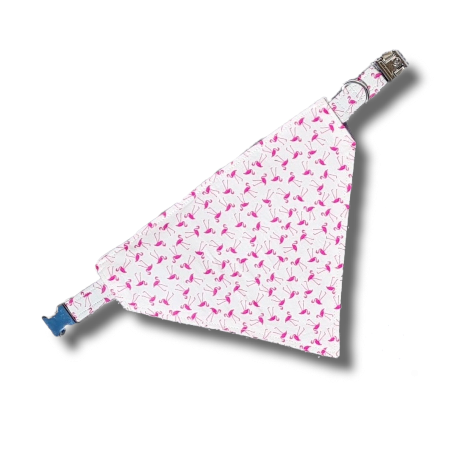 Pink flamingo dog bandana, slip on collar style.