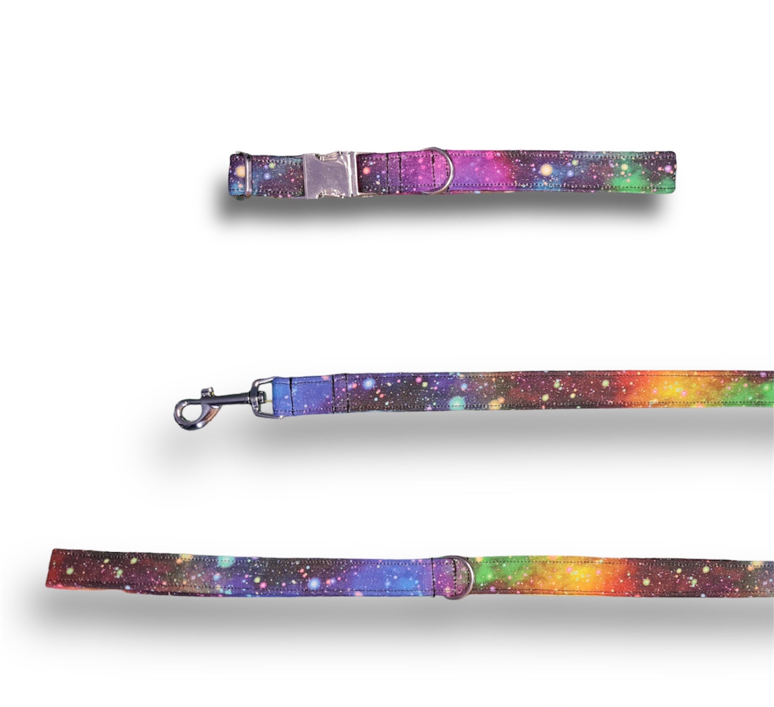 Our ‘out of this world’ galaxy themed lead and collar is bound to be a head turner when out on your walks.