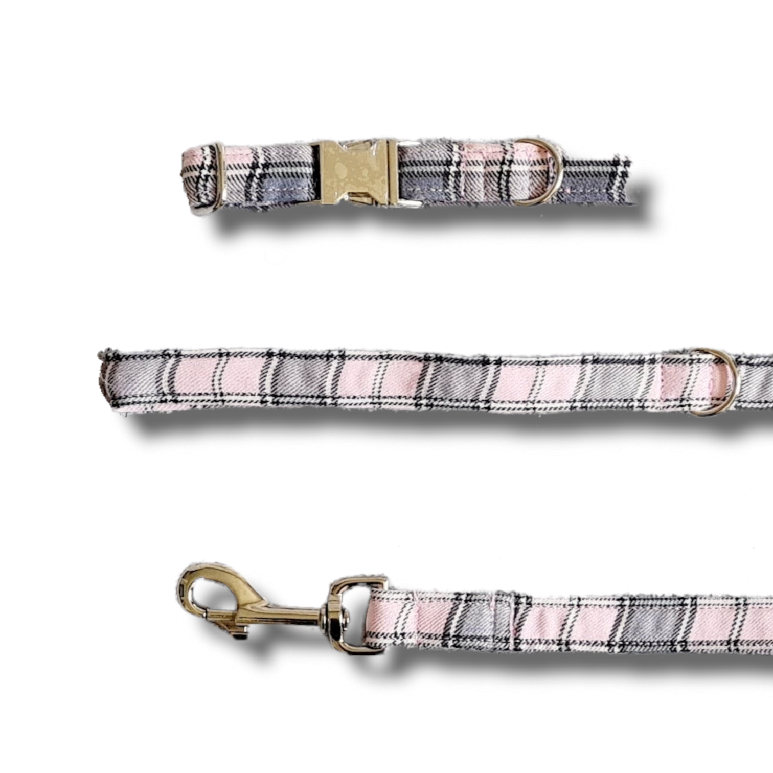 Pink and grey plaid Dog collar/lead