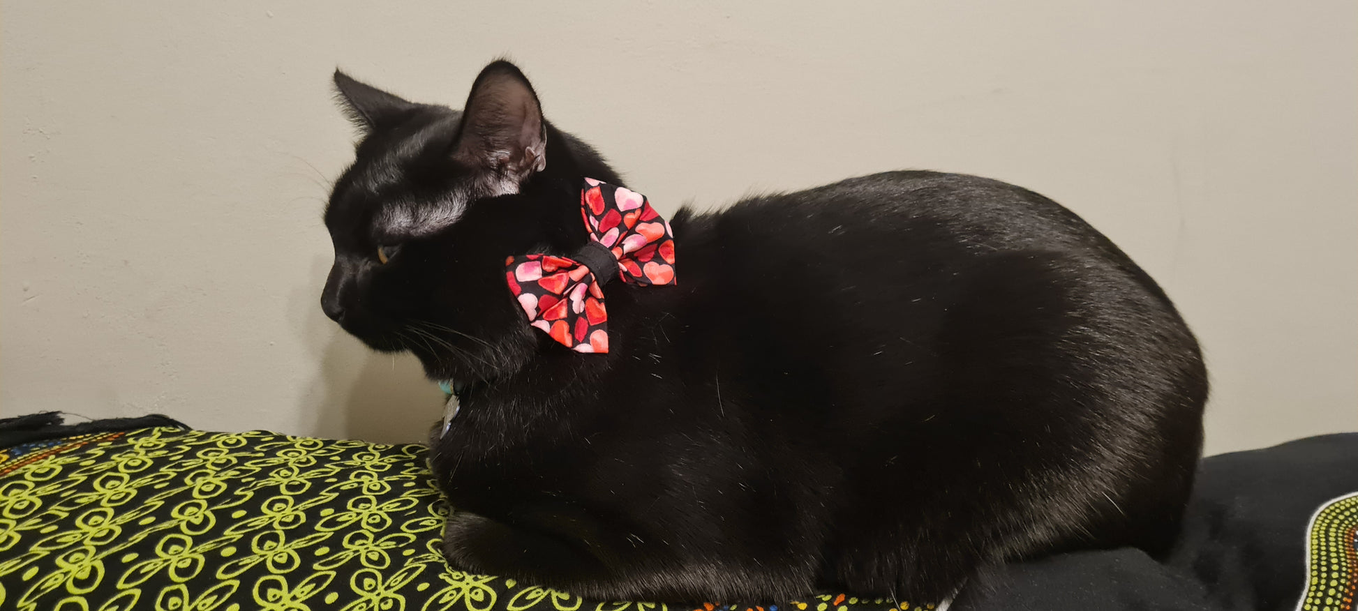 Get your dog ready for the day of love with our valentines love heart bow ties and sailor bows. This bow comes in a lovely red and pink small bows scattered over it. its a lovely touch to and dogs collar for the special day. Simple to put on your dogs collar simply attach by sliding the collar through the 2 elastic straps attached to the back of the bow.