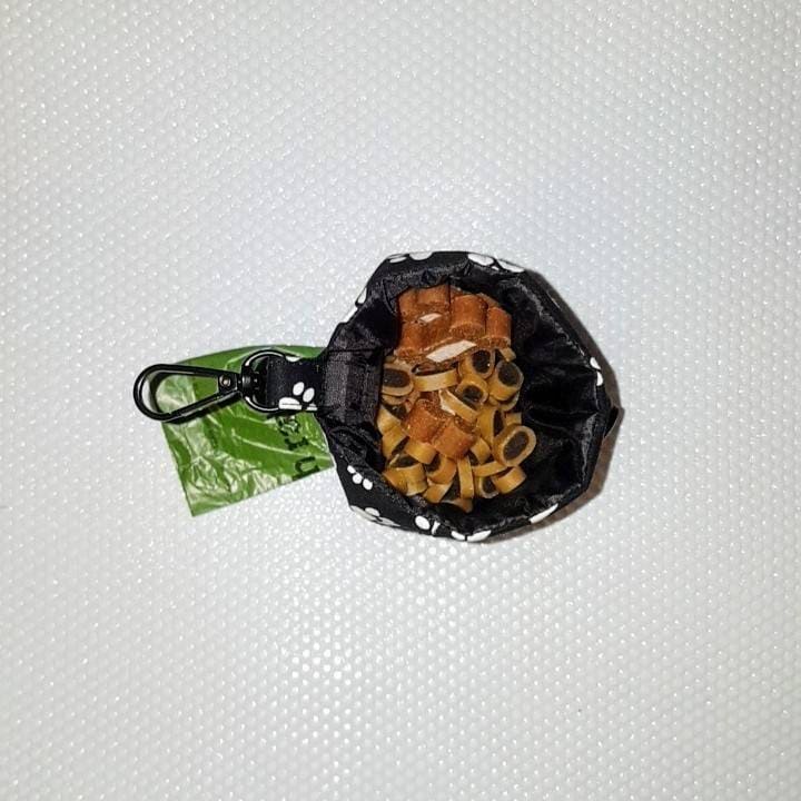 Dog treat bag with additional compartment to keep your poo bags near and treats ready to dispense when out on a walk!